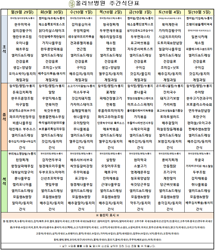 10월 1주차 주간식단표