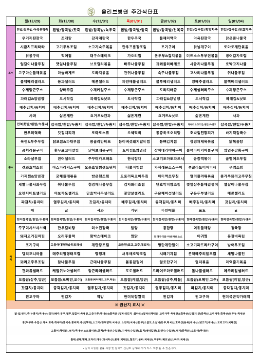 12월 5주차 주간식단표