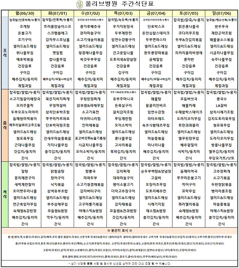 7월 1주차 주간식단표