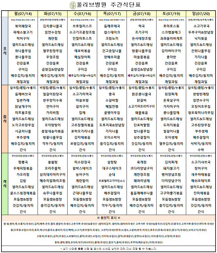 7월 2주차 주간식단표