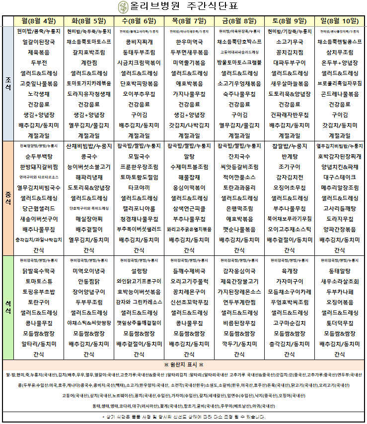 7월 5주차 주간식단표
