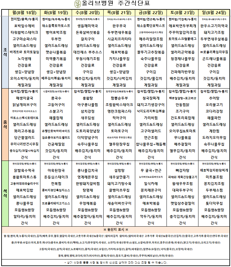 8월 3주차 주간식단표