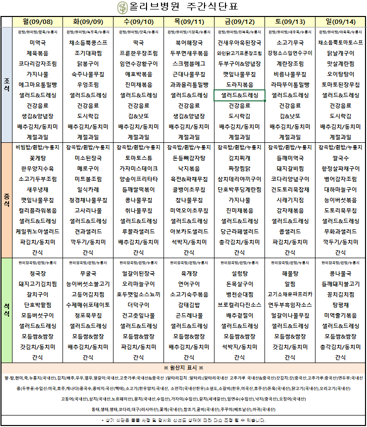 9월 1주차 주간식단