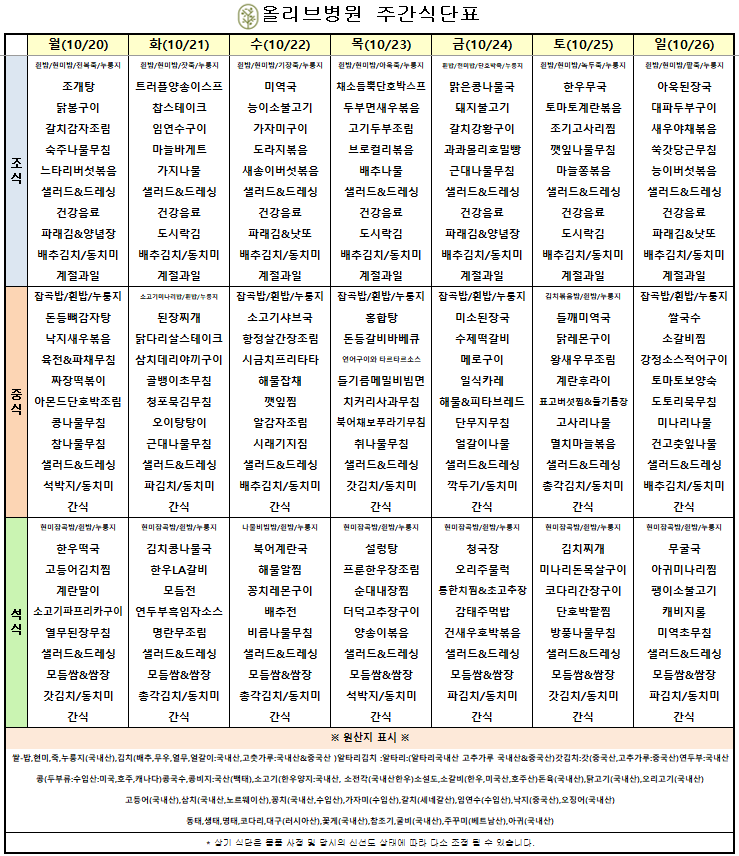 10월 3주차 주간식단표
