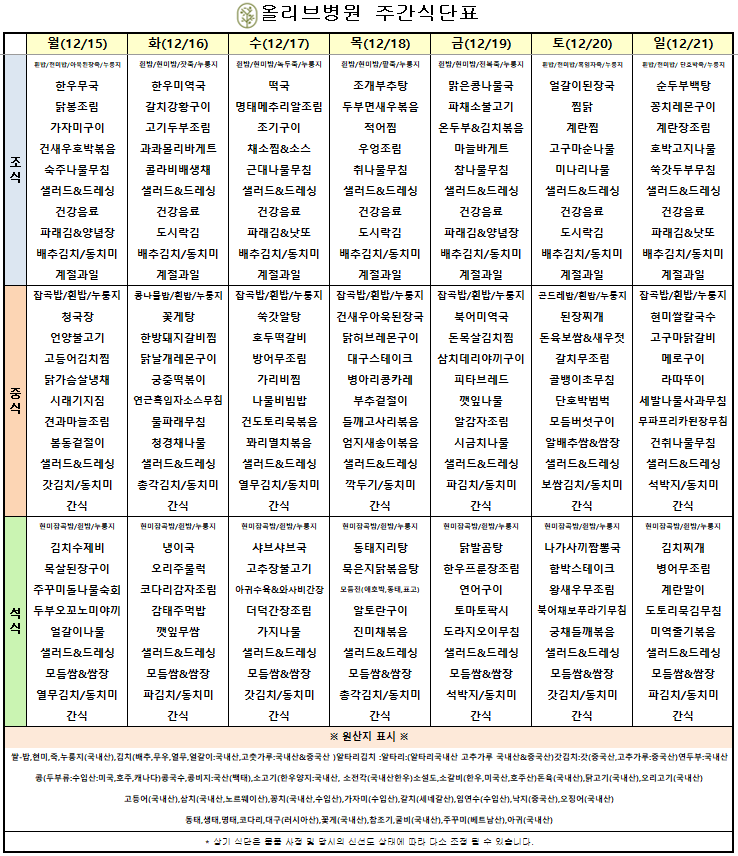 12월 4주차 주간식단표