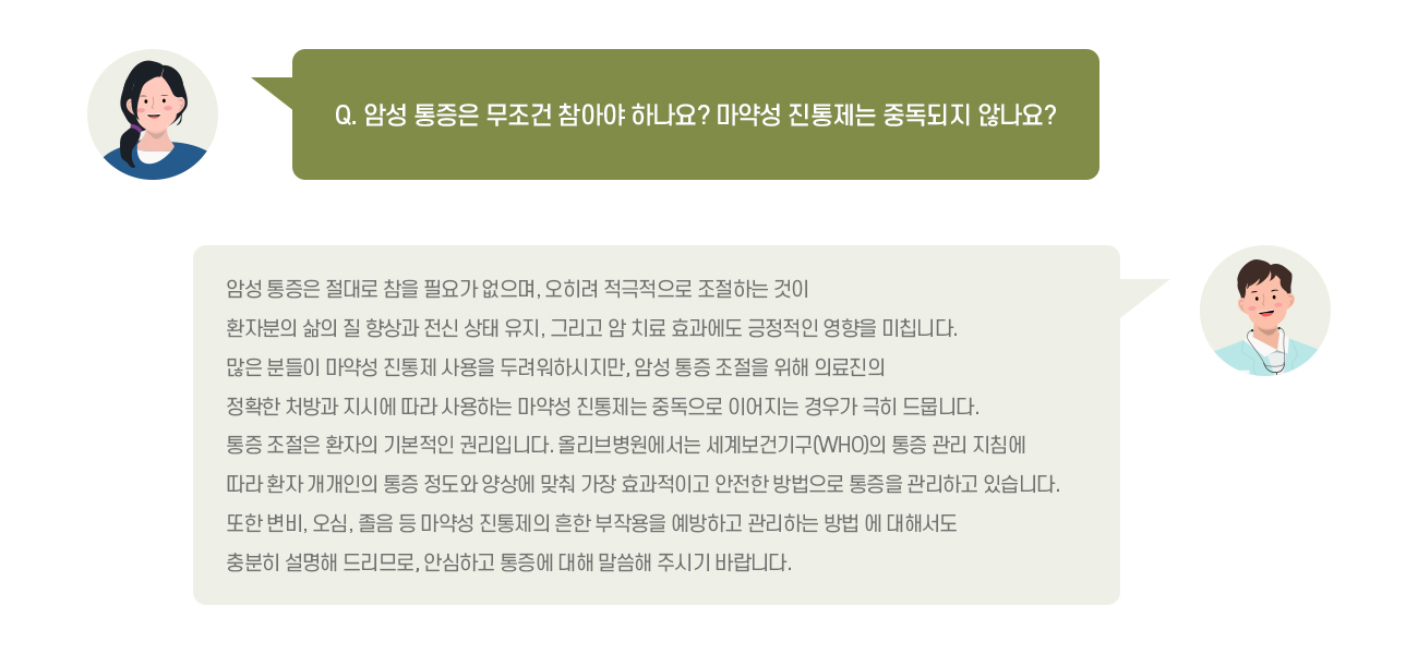 암성 통증은 참는 것이 아니라 적극적으로 관리해야 하는 증상입니다.